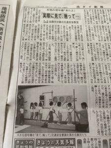 交通安全教室で信号機(実機)の車両灯器・歩行者灯器を当社にて持ち込み、