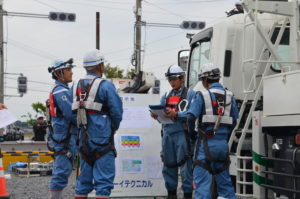 安全性・正確性・迅速性及び班長の指揮能力を参加企業7社で競い、